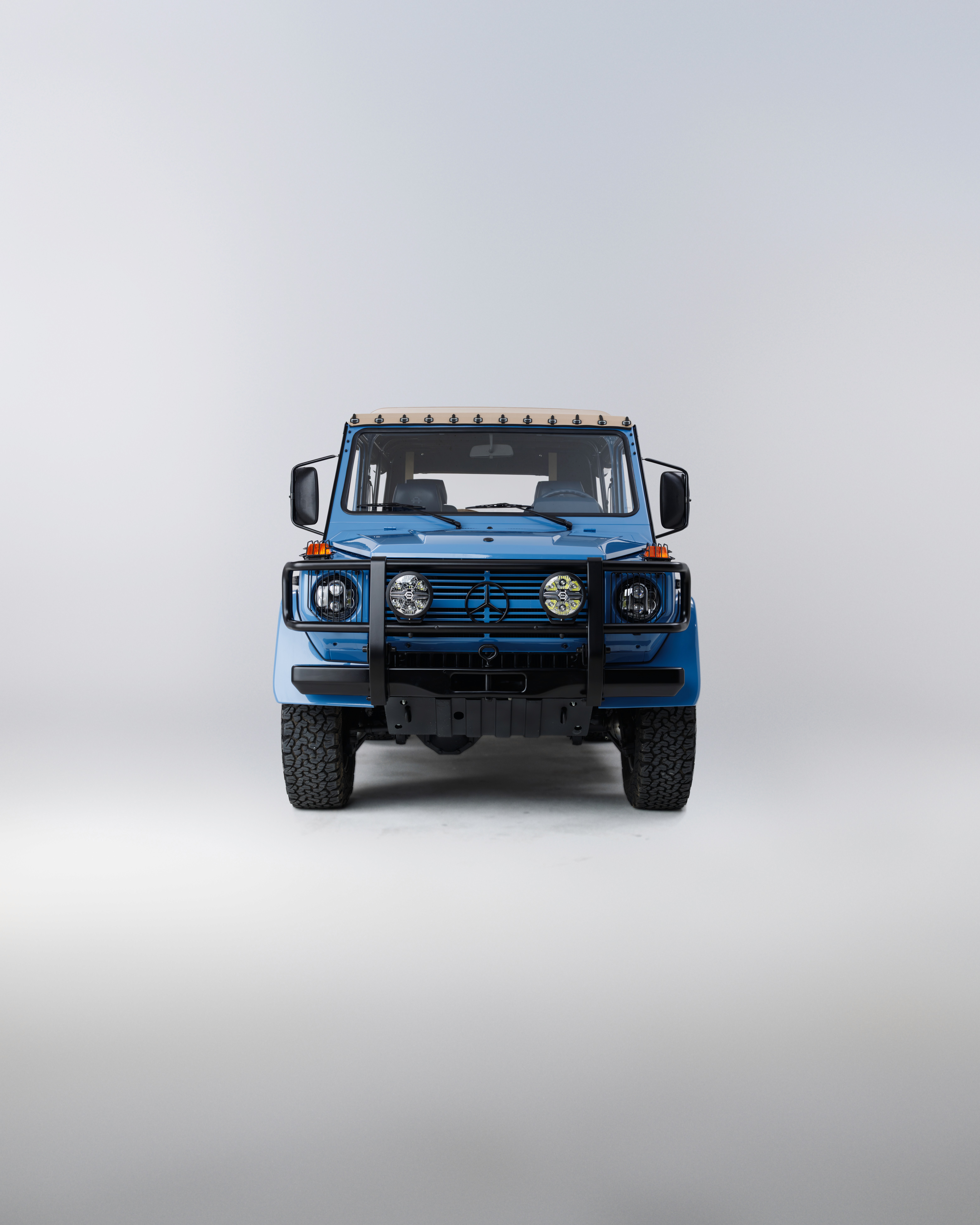 Inspired by one of the most iconic natural hues, this Mercedes-Benz GE 230 is both timeless and striking in its presence. Finished in Horizon Blue, the exterior carries depth and clarity, paired with a bold Steel Blue interior that gives the cabin a distinctive, cohesive character. A sand canvas soft-top completes the look, adding a soft contrast to the strong colour palette. At its core, the original M102 2.3L inline-four engine has been fully restored and rebuilt, ensuring reliability and enjoyment for years to come while preserving the authentic driving experience. Equipped with Mercedes-Benz 5-spoke alloy wheels, and BF Goodrich All-Terrain tyres, this build is equally at home on the road or venturing off it. Inside, an 11” Alpine system with Apple CarPlay integrates modern functionality, making every drive effortless.
