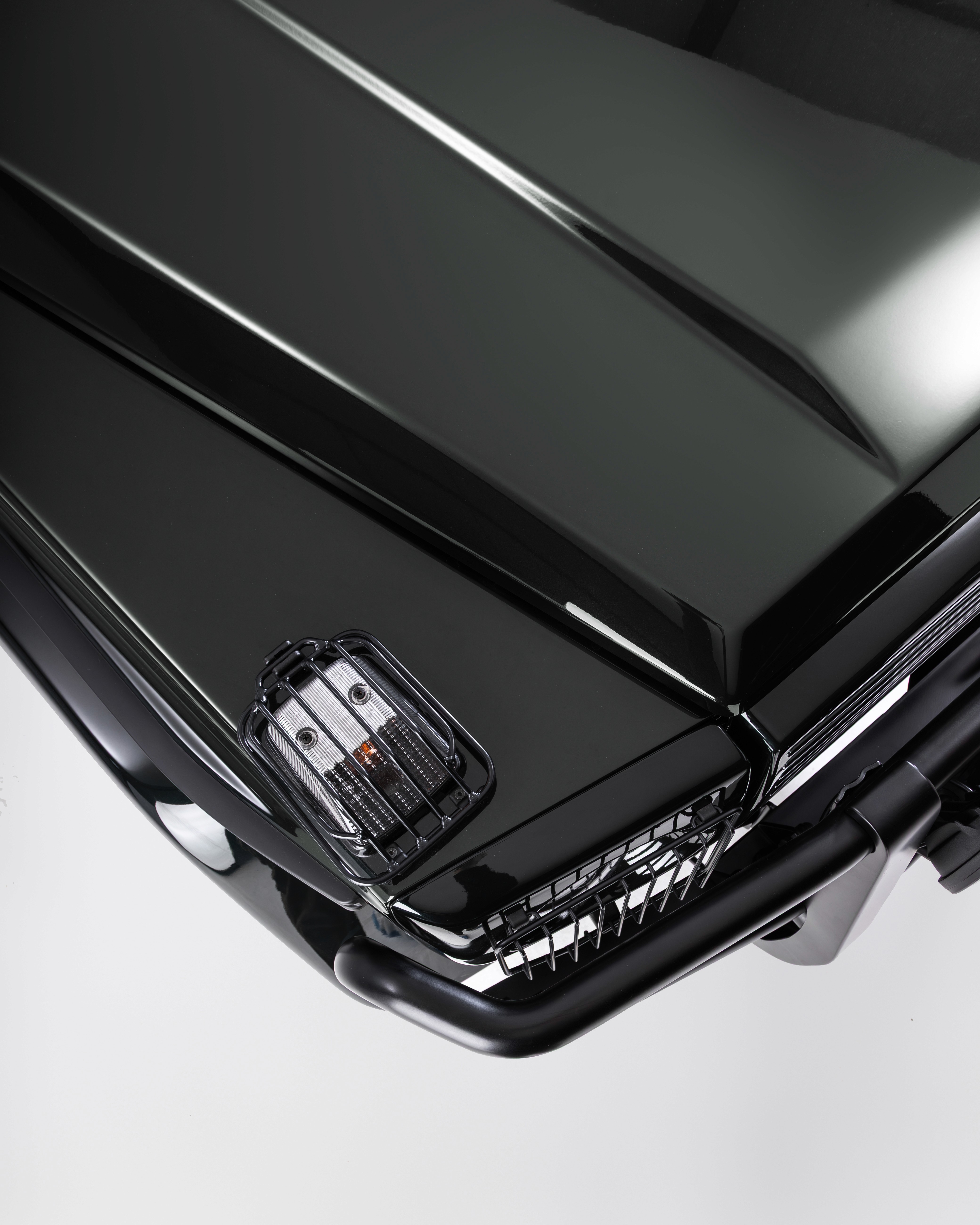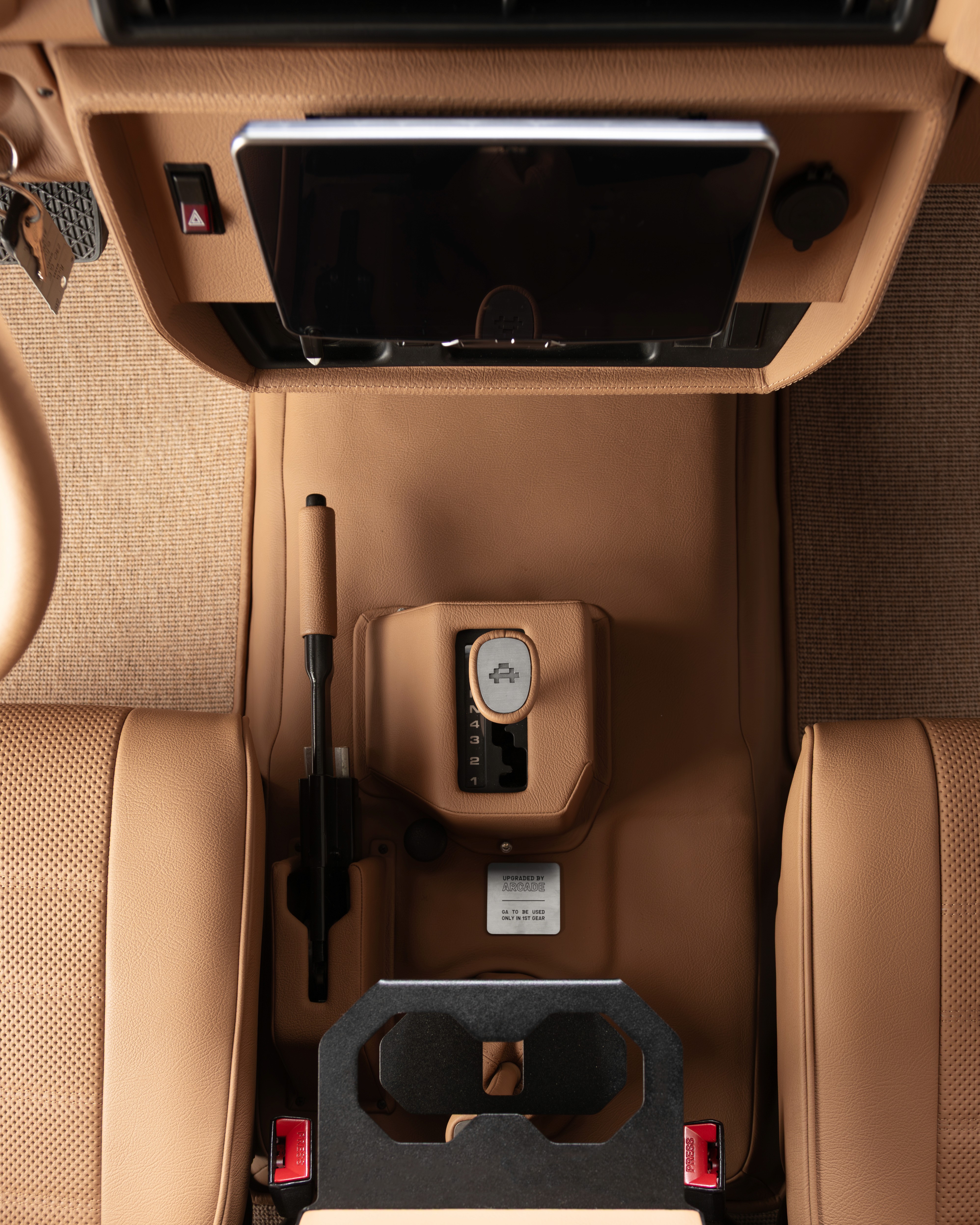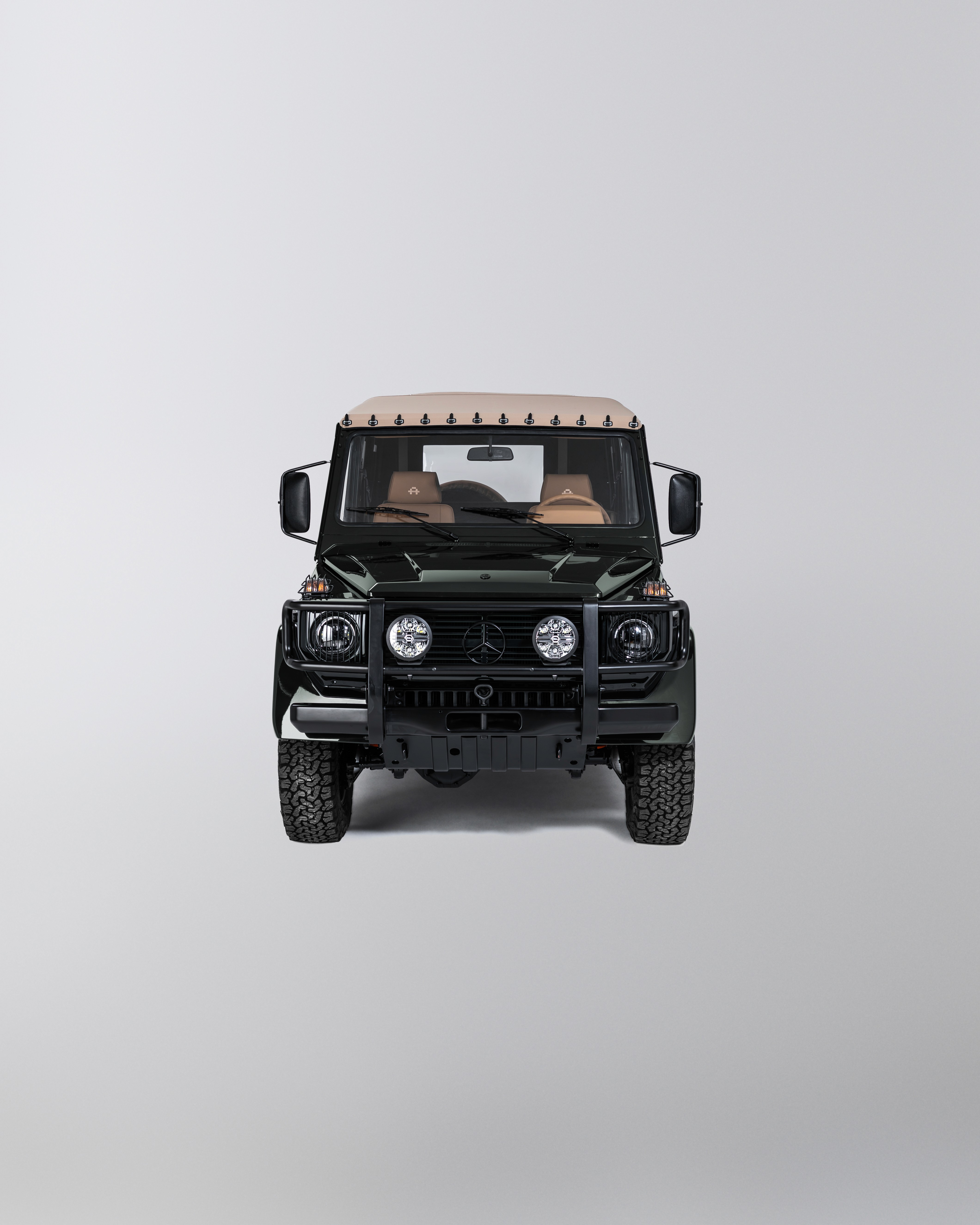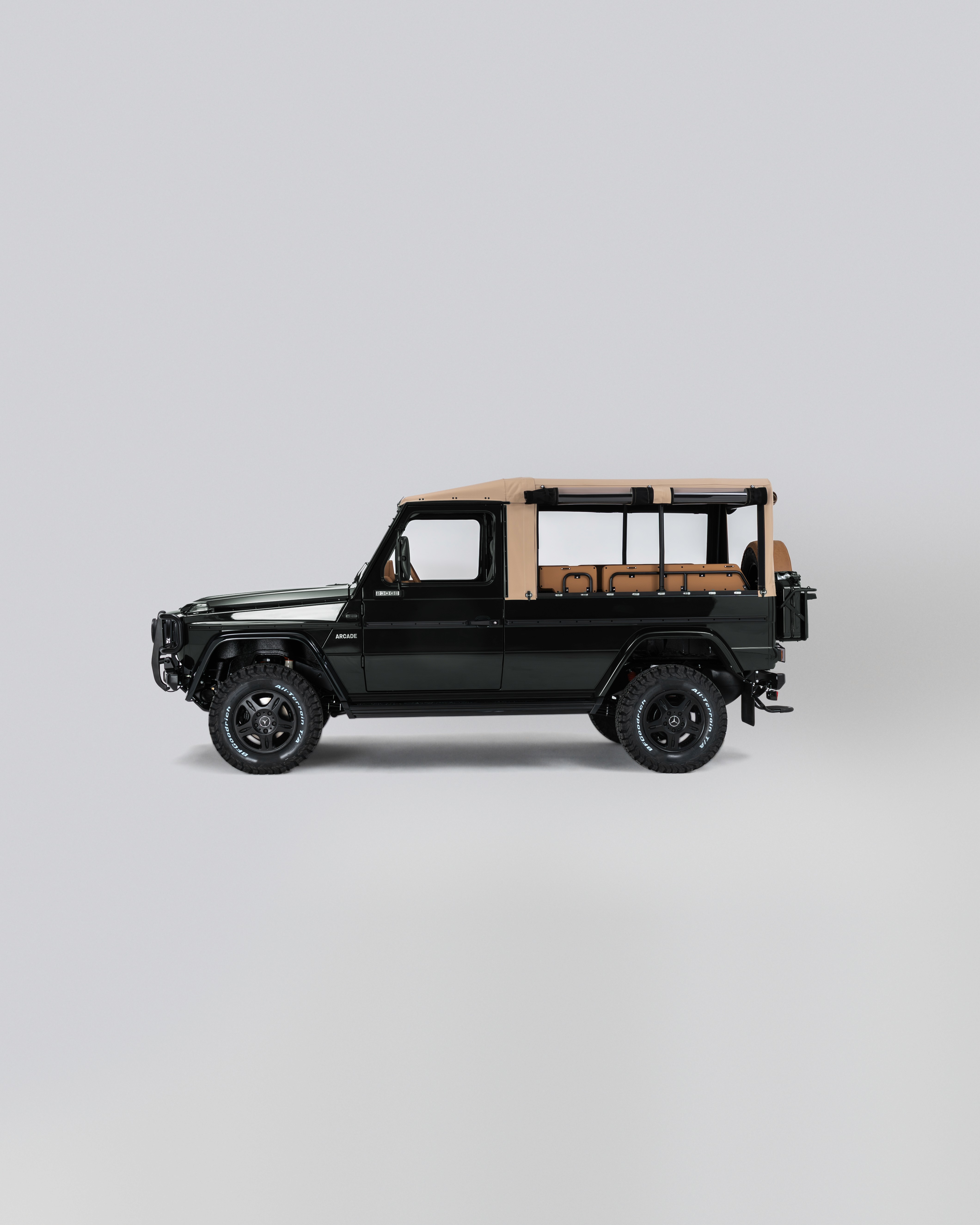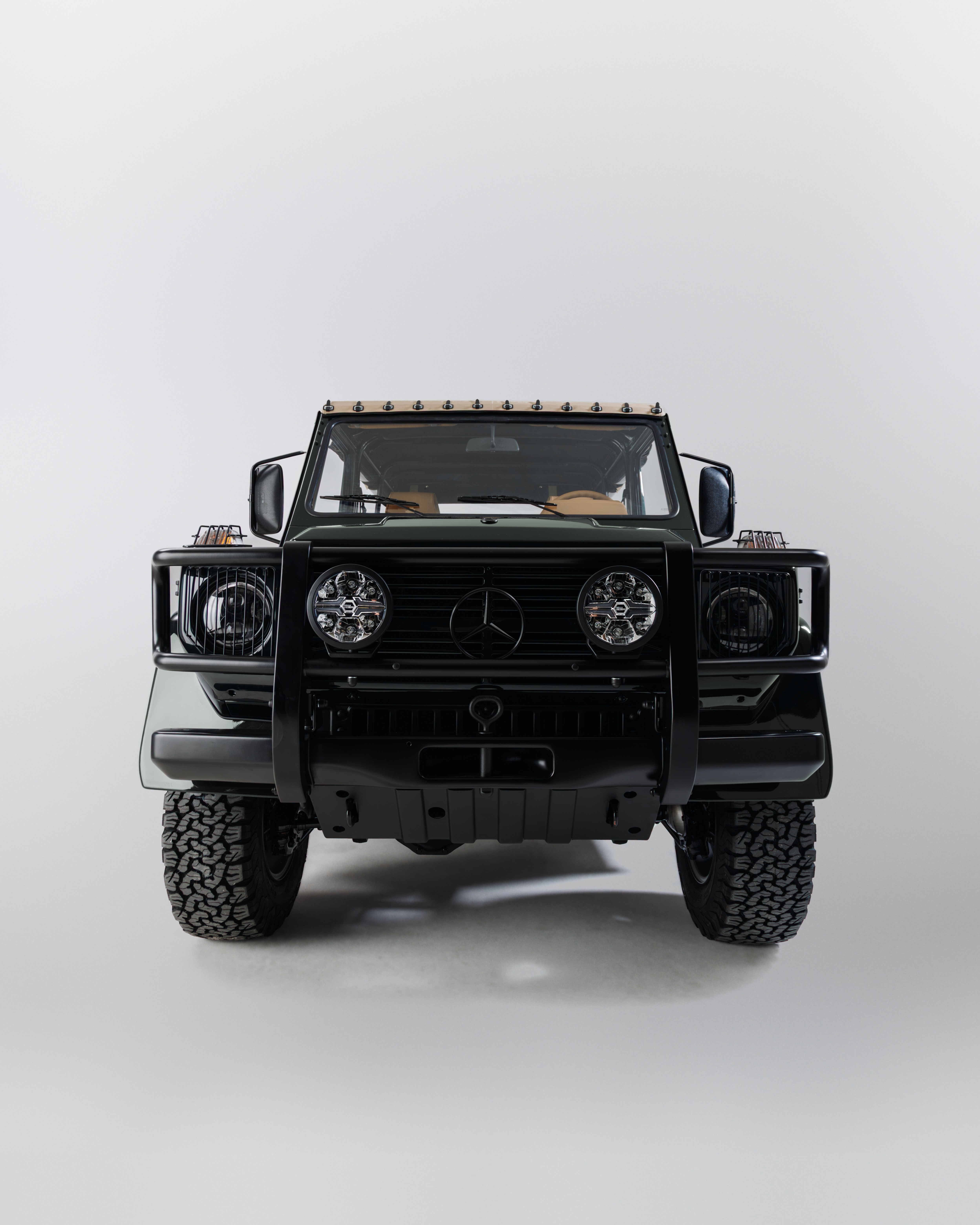 Finished in a rich Cumbrian Green Metallic, this Mercedes-Benz GE 230 presents an understated and elegant interpretation of the classic G-Class. The depth of the metallic finish gives the truck a quiet presence, best appreciated in changing light and natural surroundings. Paired with a warm Palomino interior, the cabin feels both inviting and authentic. Retaining the original 2+6 seating configuration with rear bench seating, the layout stays true to the utilitarian roots of the GE230 while offering a unique and social driving experience. At its core, the original 2.3L inline-four engine has been fully restored, delivering a driving feel that remains faithful to the vehicle’s heritage. Trail Master suspension enhances comfort and capability, making it equally suited to long-distance touring or the steep European Alps. An 11” Alpine AV system with reverse camera has been installed, adding modern functionality without detracting from the classic character.